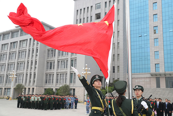 退役军人在国旗下宣誓要建功新时代
