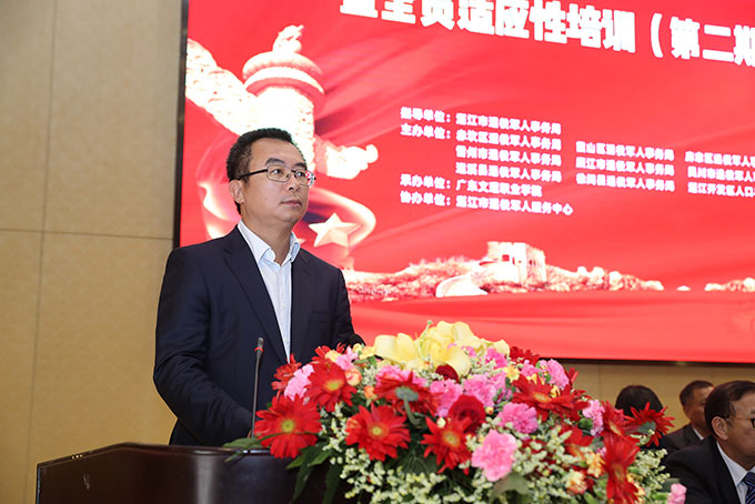 崔军指出,广东文理职业学院是“全国文明单位”“军民共建社会主义精神文明先进单位”“全省爱国拥军模范单位”“广东省军民共建先进单位”,师资力量雄厚,科研科技气氛浓厚,希望参加培训的学员坚定理想信念,不忘军人初心,永葆军人本色,珍惜学习机会,在新的岗位实现自己的人生价值和社会价值。