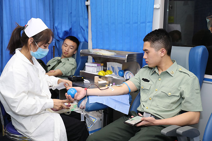 在献血现场,退役军人培训班学员认真填写表格,配合医护人员测量血压、化验血液,然后井然有序地参加献血。从现场可以看到,参加献血的学员精神饱满,默默地奉献爱心。