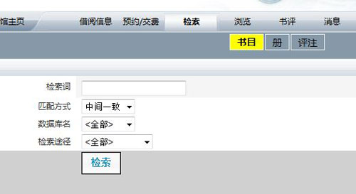 进入个人主页后,点击导航栏“检索”,输入需要预约的书名等进行检索。