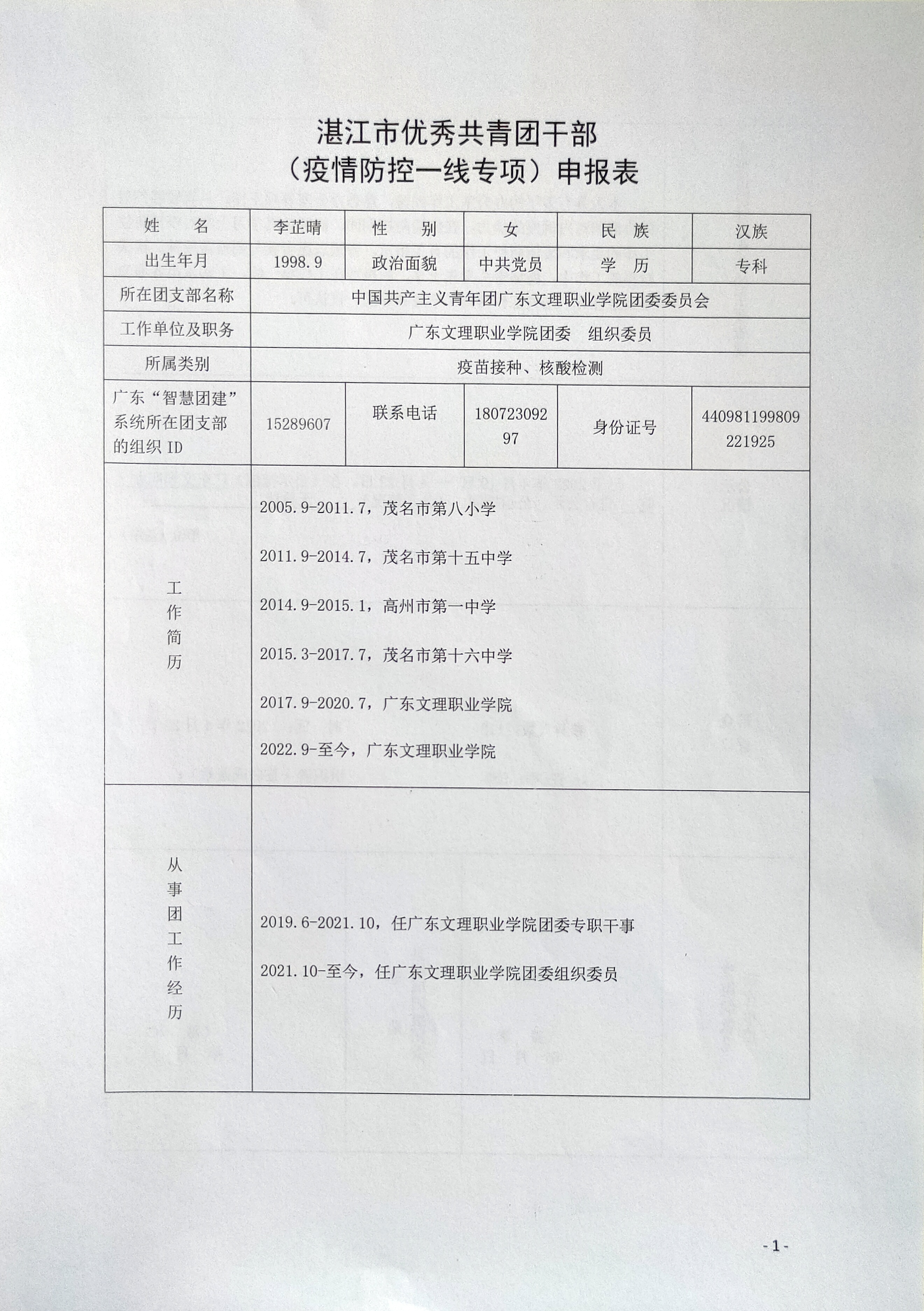 - 关于确定广东文理职业学院出席共青团湛江市第十四次代表大会代表候选人预备 [09/23/2022]
