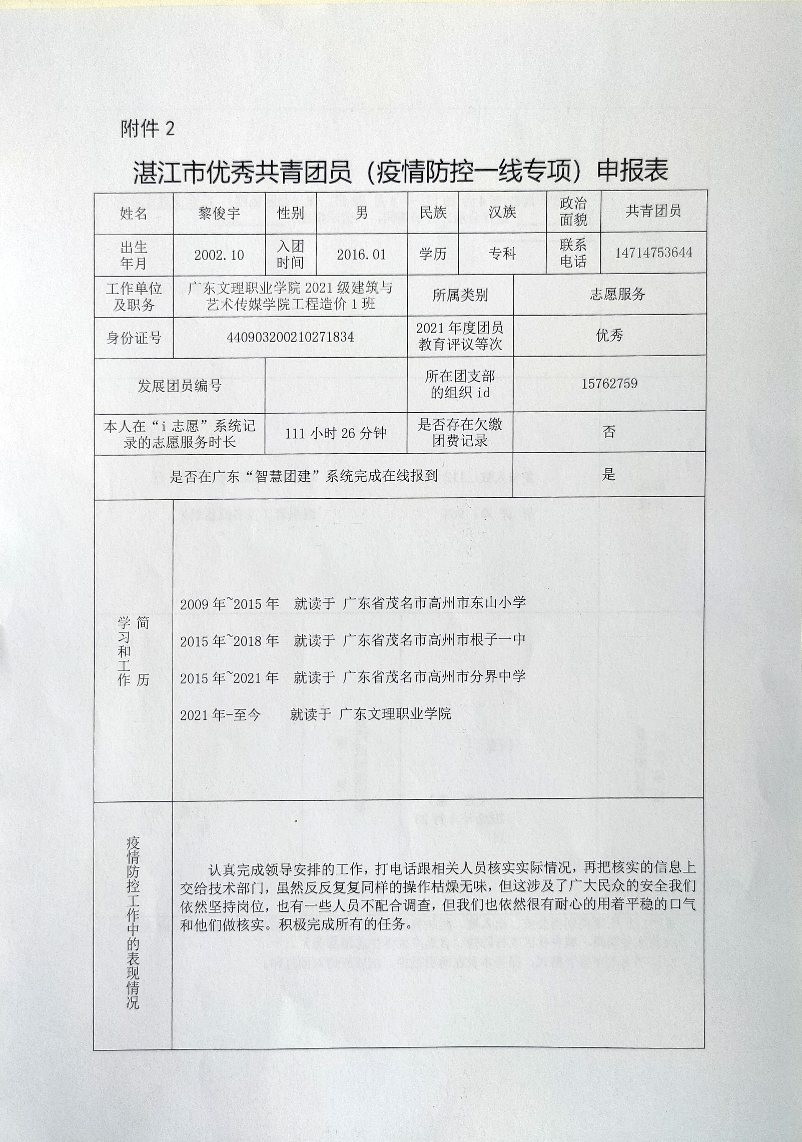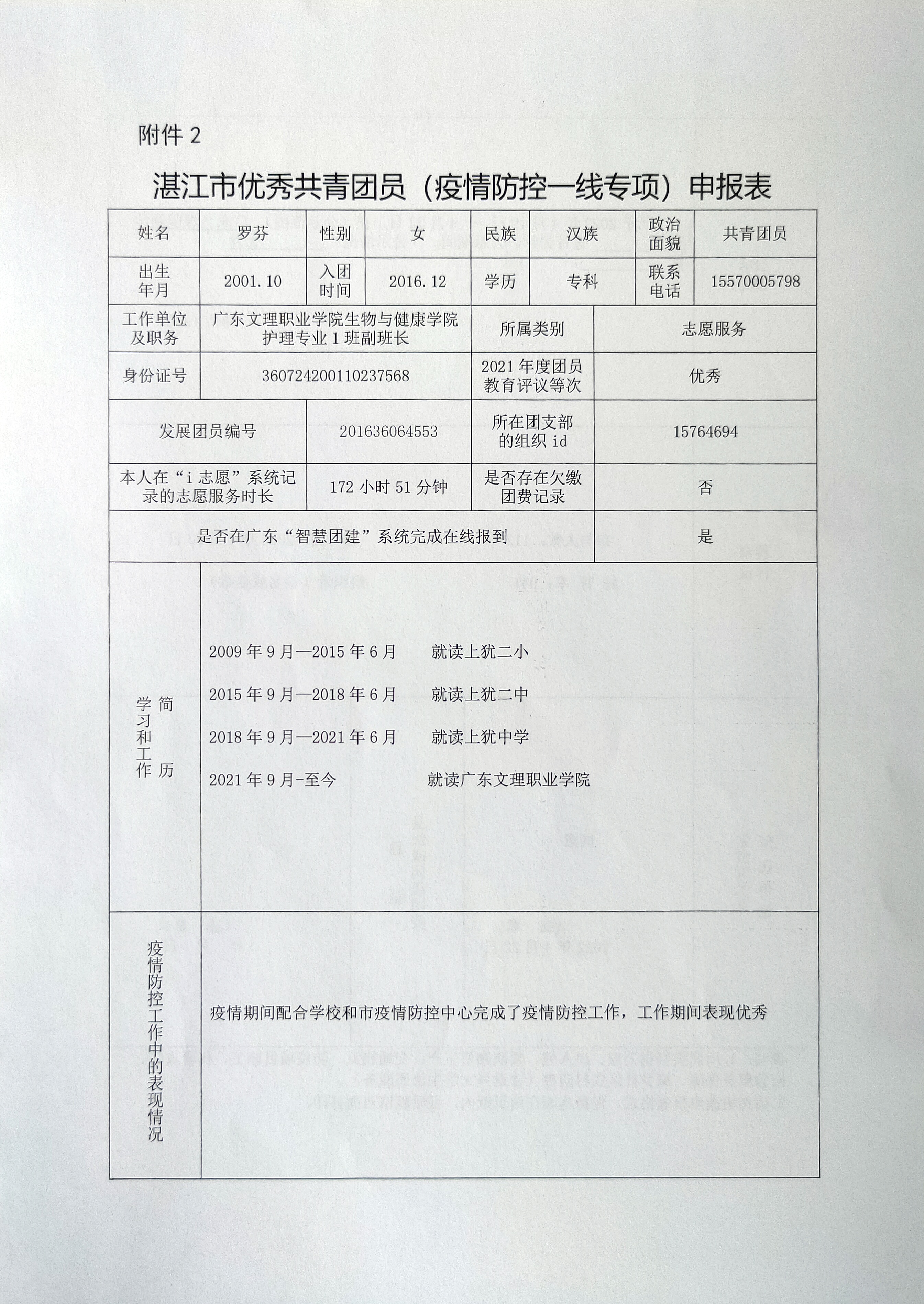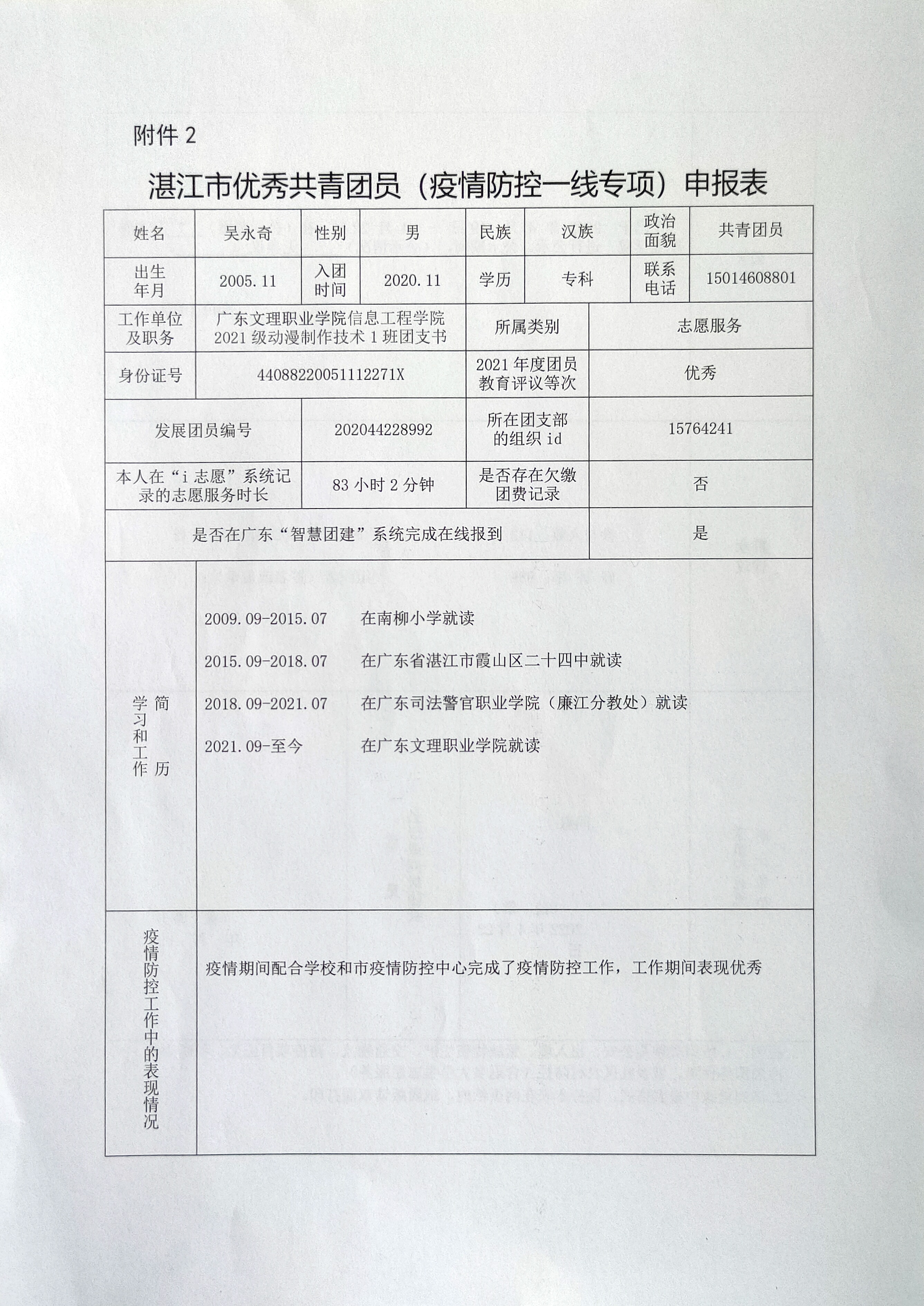 更多为表彰先进,树立典型,根据团市委关于开展2021-2022年度湛江市优秀共青团员、优秀共青团干部(疫情防控一线专项)的表彰工作通知,经过学院团委研究,决定于2022年4月19日至2022年4月22日对我院优秀共青团干部和优秀共青团员申报事宜进行公示,公示如下: