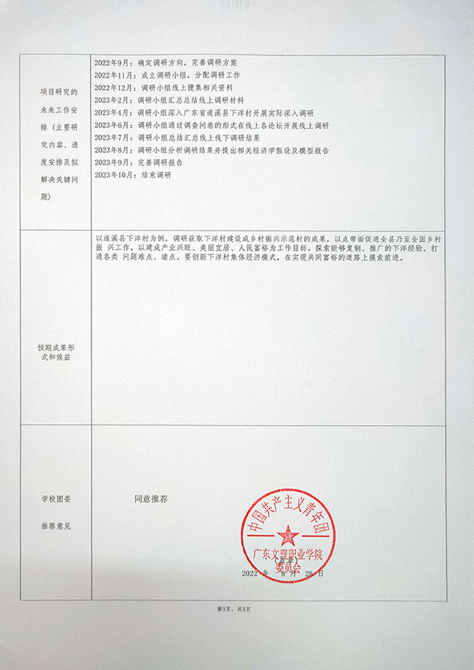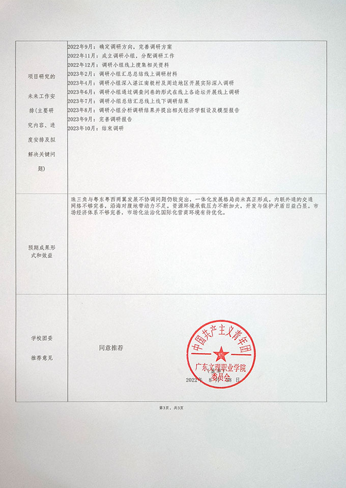 - 关于共青团广东文理职业学院委员会申报2023年度广东省“攀登计划”专项资金 [08/29/2022]