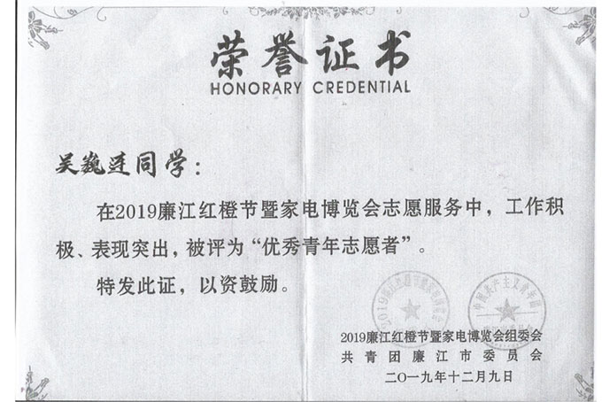 在校团委新媒体中心工作的近两年里,我尽心尽力地完成上级分配的工作任务,做到教育好大一级同学们学习新媒体的技能与实践能力,努力创新新媒体中心推文制作等。为了更好地锻炼自己,我还常常参加一些学习组织学生活动,曾荣获廉江市红橙节“优秀青年志愿者”称号。