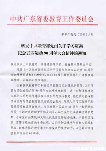 三、积极贯彻纪念五四运动90周年大会精神,教育和引导广大学生健康成长