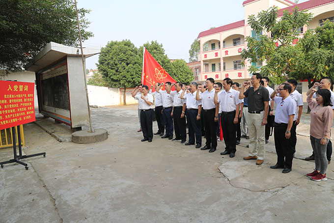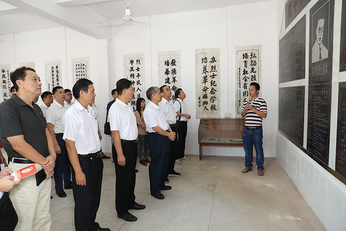 是日早上8点,颜大胜、郝世栋一行来到位于廉江市石岭镇的黄平民烈士纪念学校,先是参观黄平民烈士纪念室,听取纪念室负责人介绍黄平民烈士的革命事迹,接着在黄平民烈士头像前重温入党誓词。黄平民烈士原是中共南路特委书记,1928年12月被国民党杀害。黄平民烈士纪念室是湛江市党史教育基地。在参观中,党员干部们深刻体会到革命先烈抛头颅、洒热血、宁死不屈的革命精神和坚定信仰。