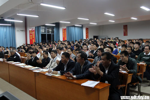 党委委员、党办主任张万新在大会上宣读了《广东文理职业学院关于深入开展党的群众路线教育实践活动的实施方案》。