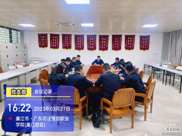 3月27日下午,中共广东司法警官职业学院廉江校区支部委员会在支部会议办公室A101旁召开2023年度党员民主生活会。会议由支部书记黄平主任主持,议程有三:一是阅读学习习近平总书记重要文章《新时代党和人民奋进的必由之路》;二是党史教育民主生活会;三是2023年度党员民主评议。