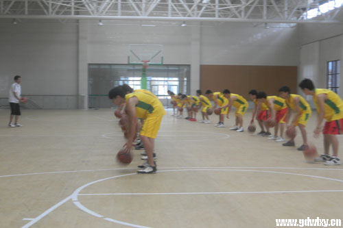 图为区亦谦老师在篮球馆上课