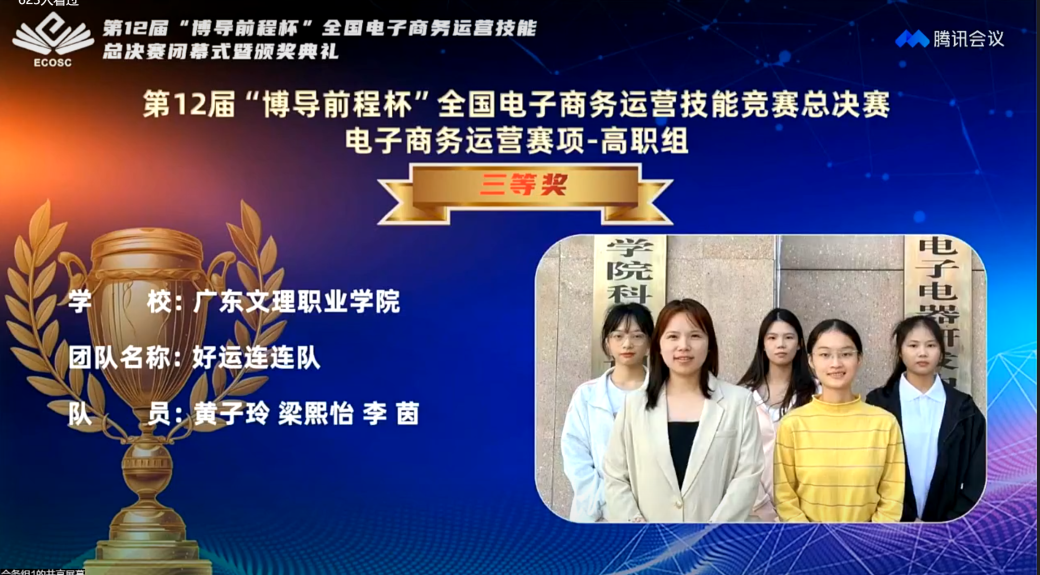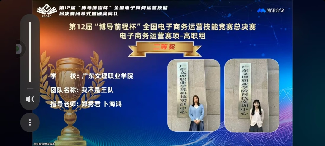 “博导前程杯”电商运营技能竞赛作为电商领域的顶级赛事之一,汇聚了来自全国各地的优秀选手和顶尖团队。此次竞赛的佳绩,再次彰显了广东文理职业学院在电商教育领域的强劲实力和卓越成就。我院一直以来致力于培养学生的实践能力和创新精神,通过丰富多彩的实践教学活动和校企合作项目,为学生们提供了广阔的实践平台和宝贵的锻炼机会。这些努力不仅为学生们的职业发展奠定了坚实的基础,也为学校的教学改革和人才培养工作注入了新的活力和动力。