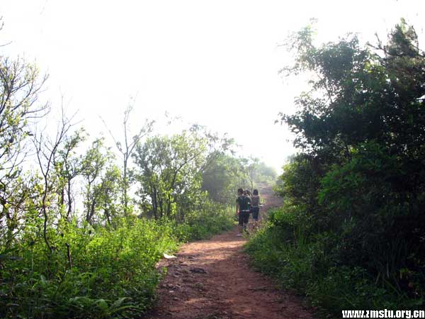 沿着南麓崎岖的羊肠小道,一步一步往上攀登,会汗流浃背,气喘吁吁,及至顶峰,一阵清风扑面而来,顿觉心旷神怡。