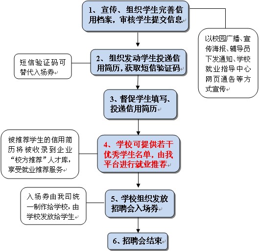 4、学校可提供若干已建档的优秀学生名单,由我平台推荐到企业(被推荐学生的信用简历将被收录到企业的“校方推荐”人才库,享受就业推荐服务)