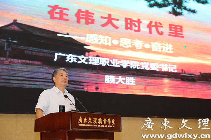 9月27日上午,广东文理职业学院学术报告厅师生人头涌涌,党委书记颜大胜在这里开讲2018秋季新学期思政第一课《在伟大的时代里》,学院干部师生、党员及入党积极分子400多人参加听课。