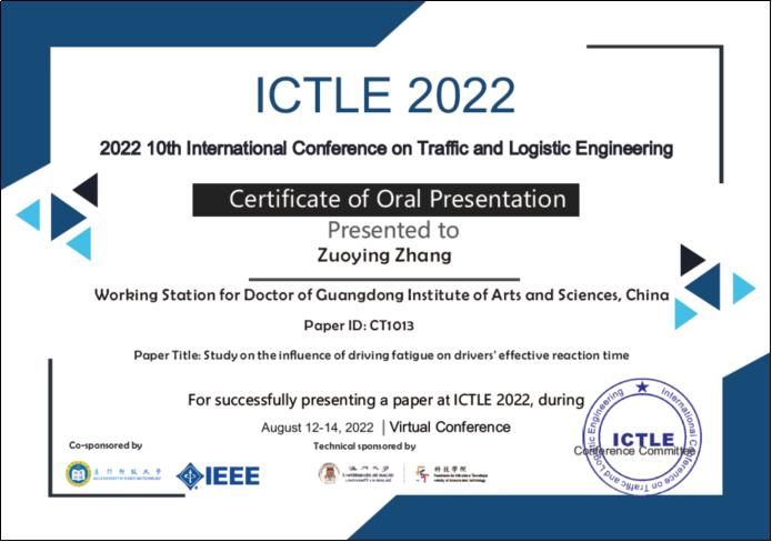 2022 10th International Conference on Traffic and Logistic Engineering (Conference Record #55577)于2022年8月12至14日在澳门召开,本次会议由澳门科技大学协办,澳门大学科技学院提供支持,会议旨在增进各国交通与物流工程学者之间的学术交流, 分享研究经验,探寻合作机会,推动交通与物流工程领域科学研究的发展。