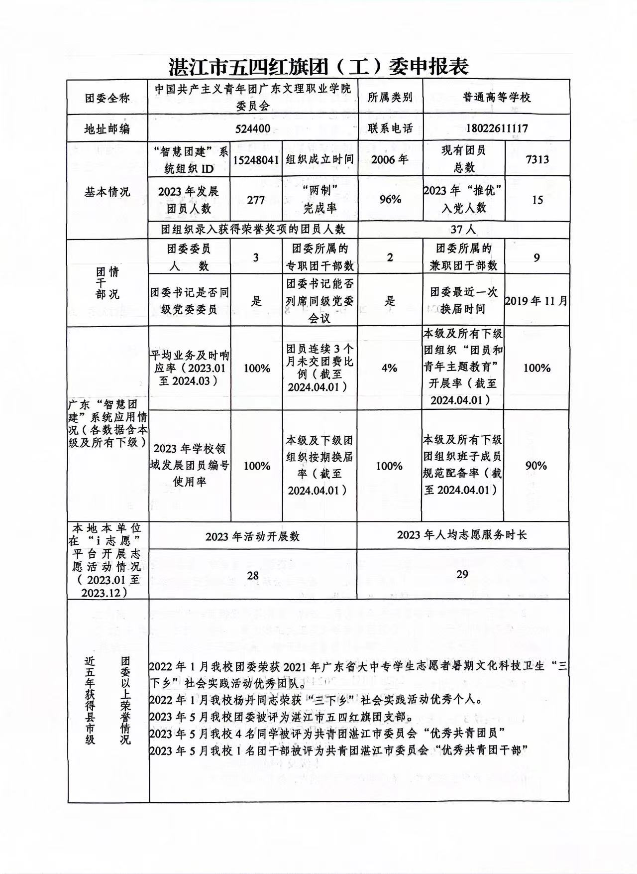 更多关于共青团广东文理职业学院委员会申报2023—2024年度