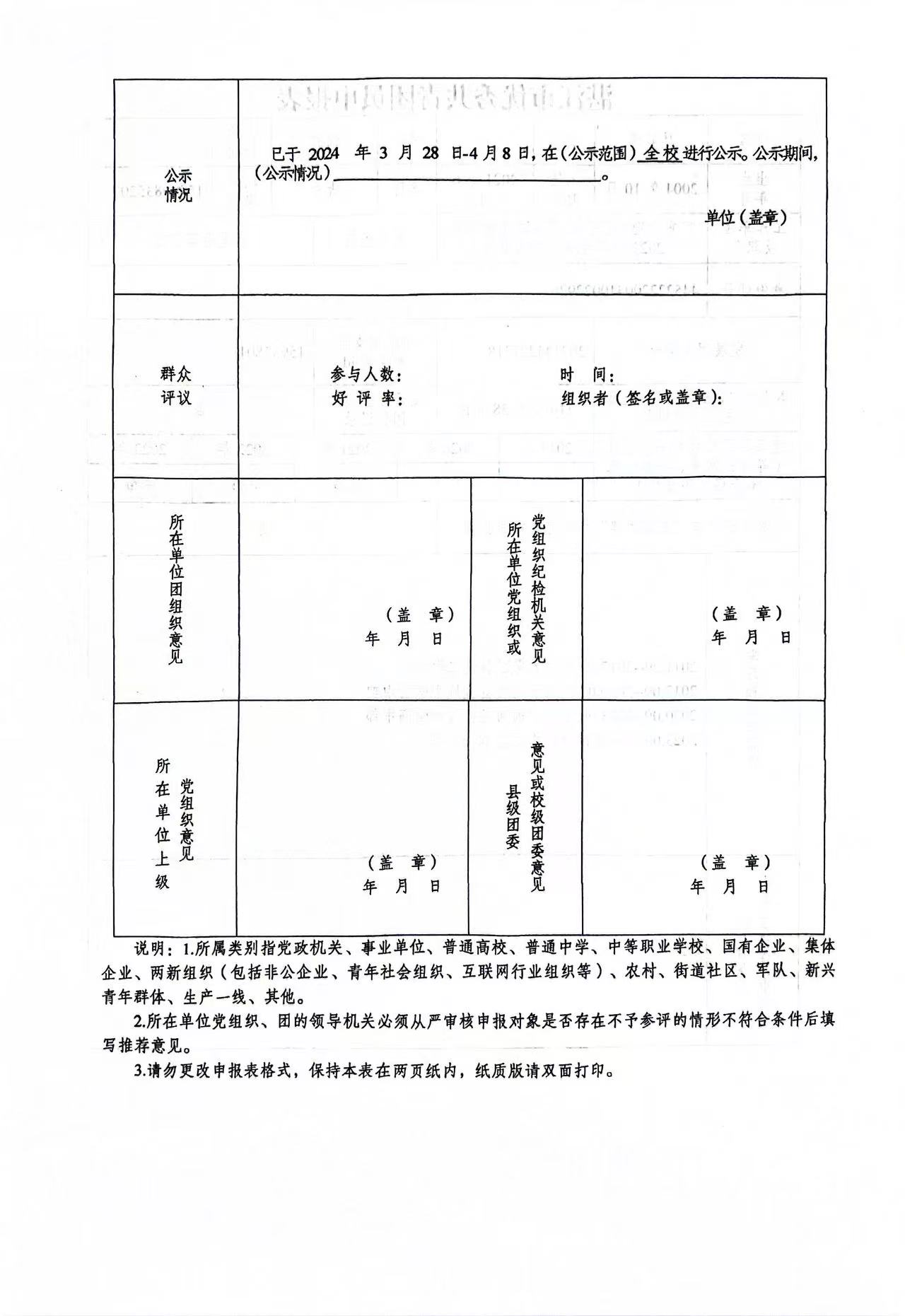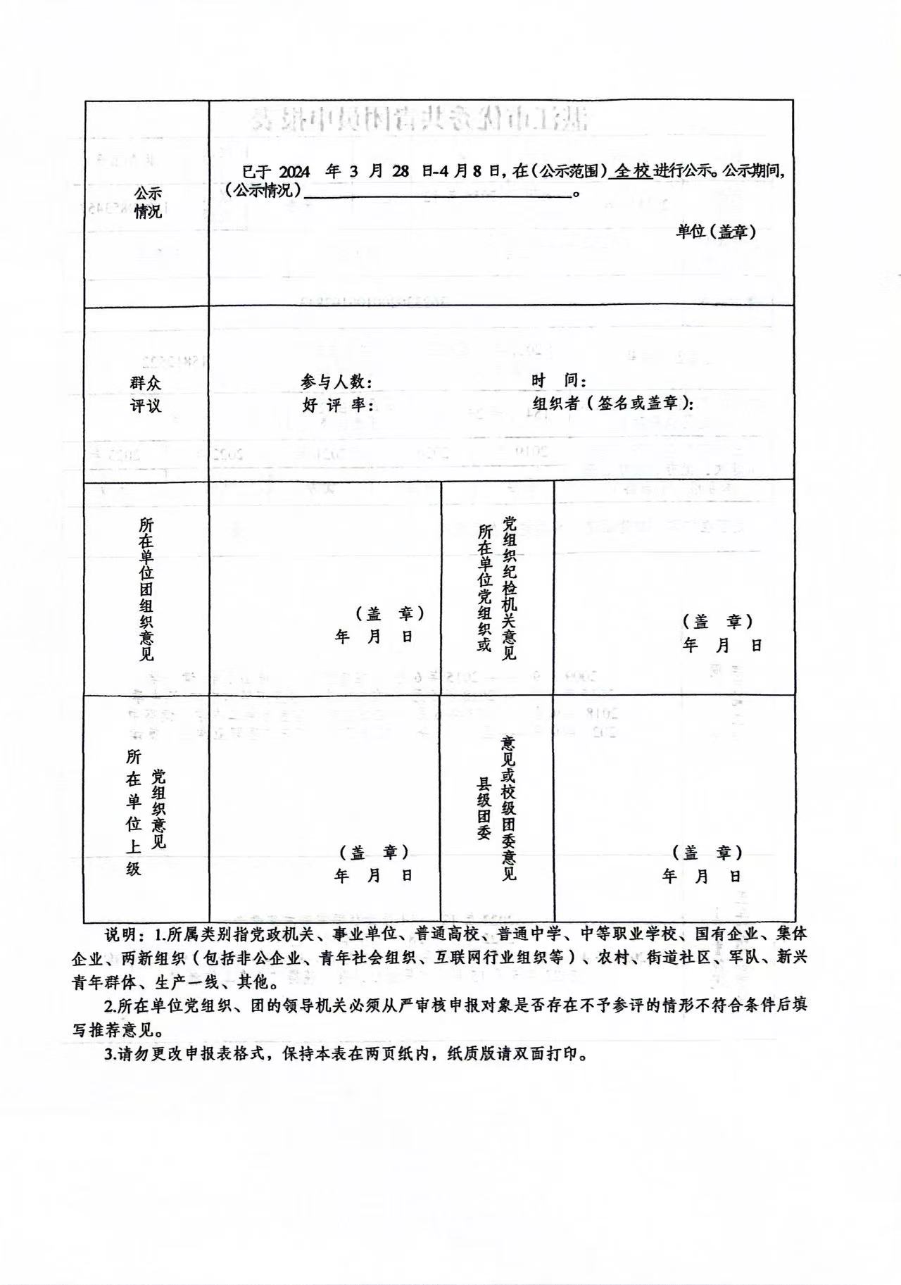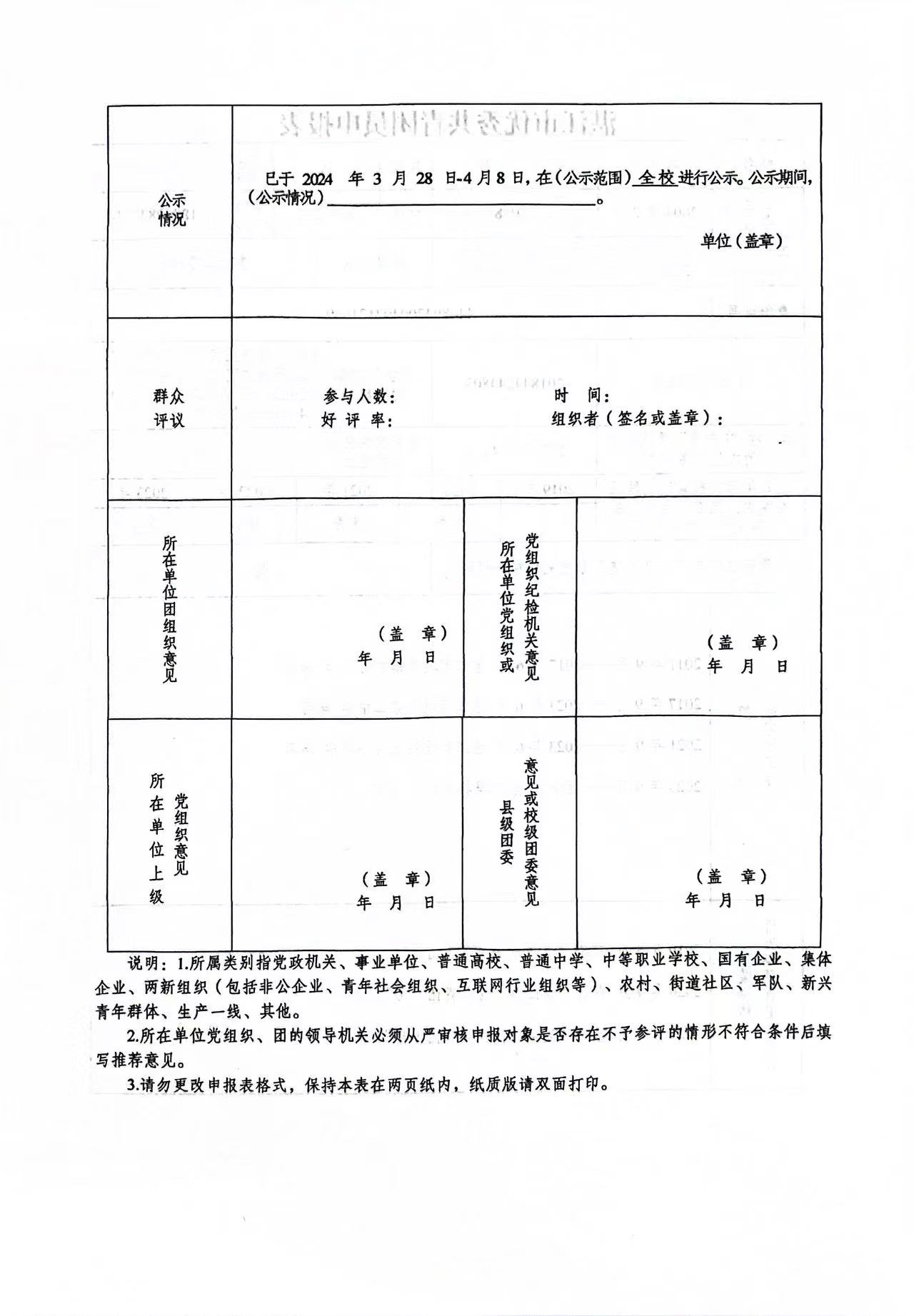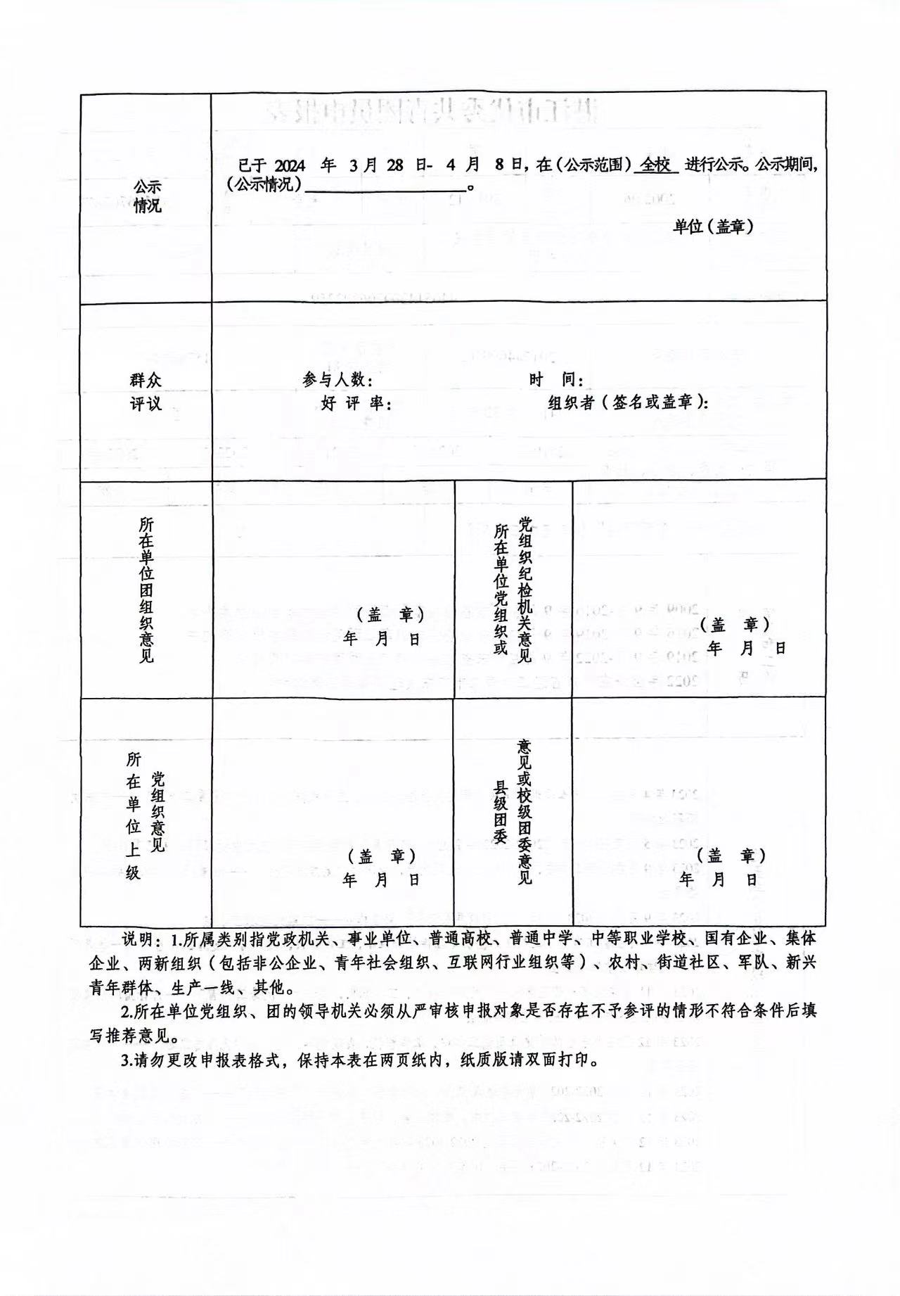 公示期为2024年3月28日至4月8日。公示期内,如有异议,请联系团委专职团干:周子龙,联系方式:15986231411。