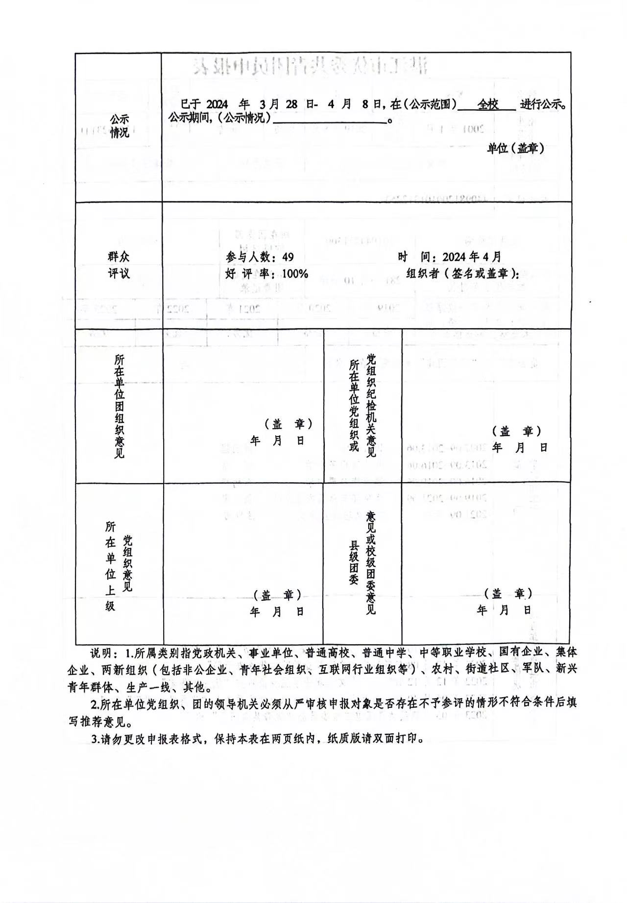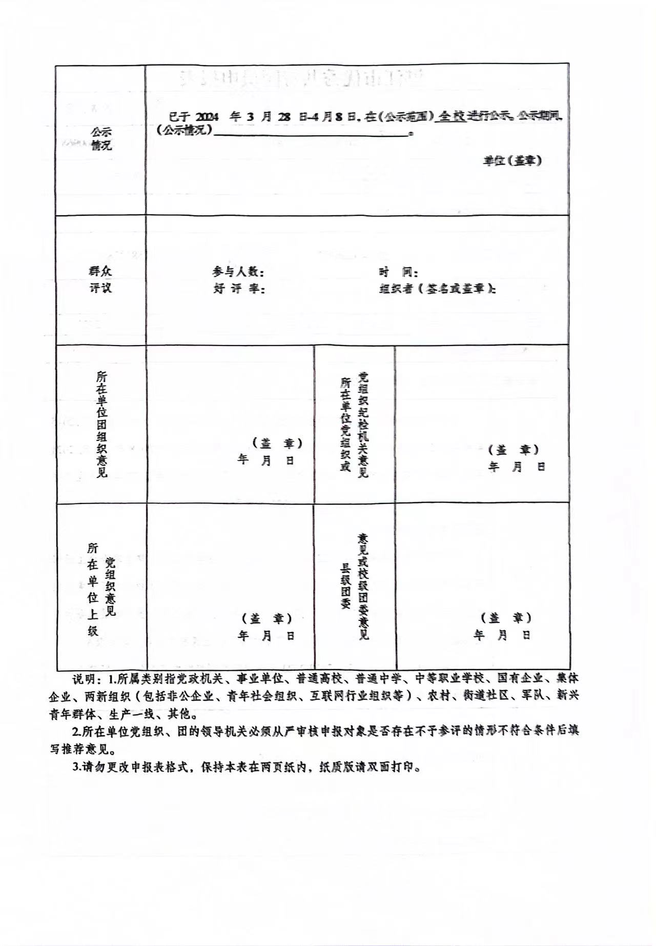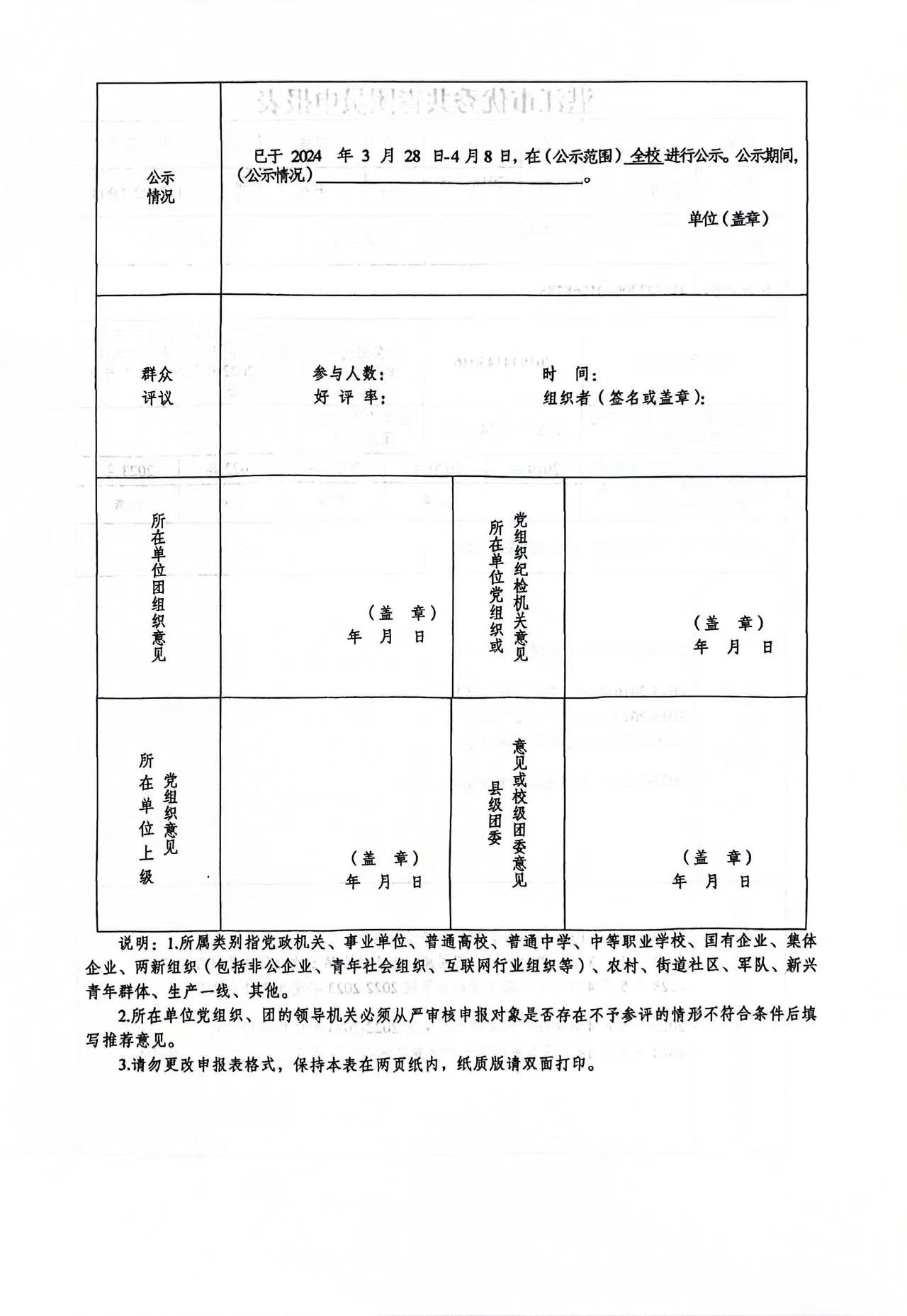 公示期为2024年3月28日至4月8日。公示期内,如有异议,请联系团委专职团干:周子龙,联系方式:15986231411。