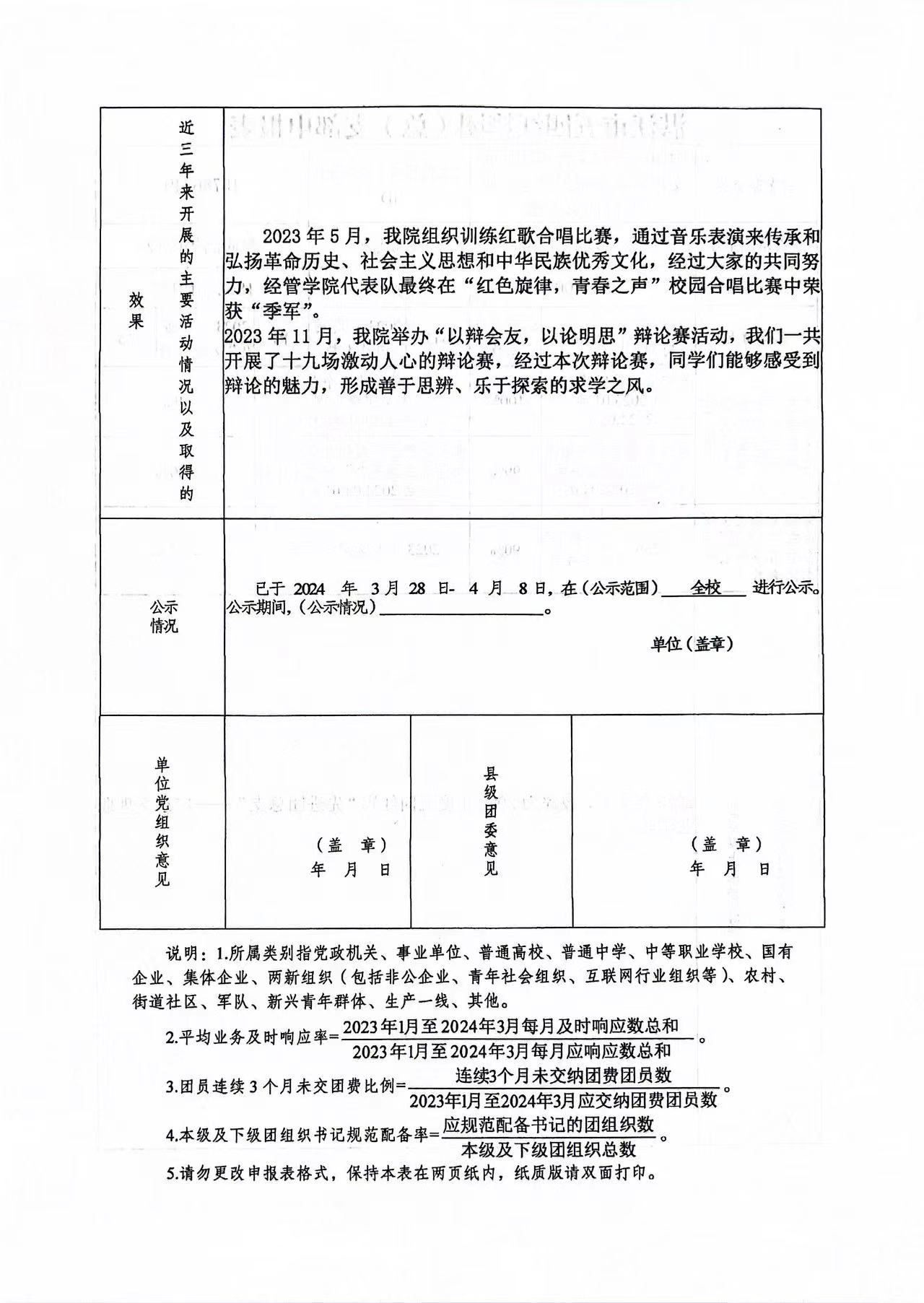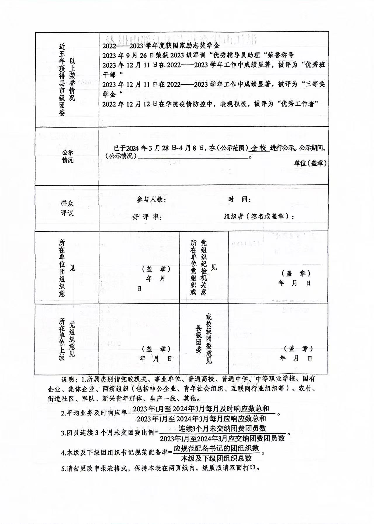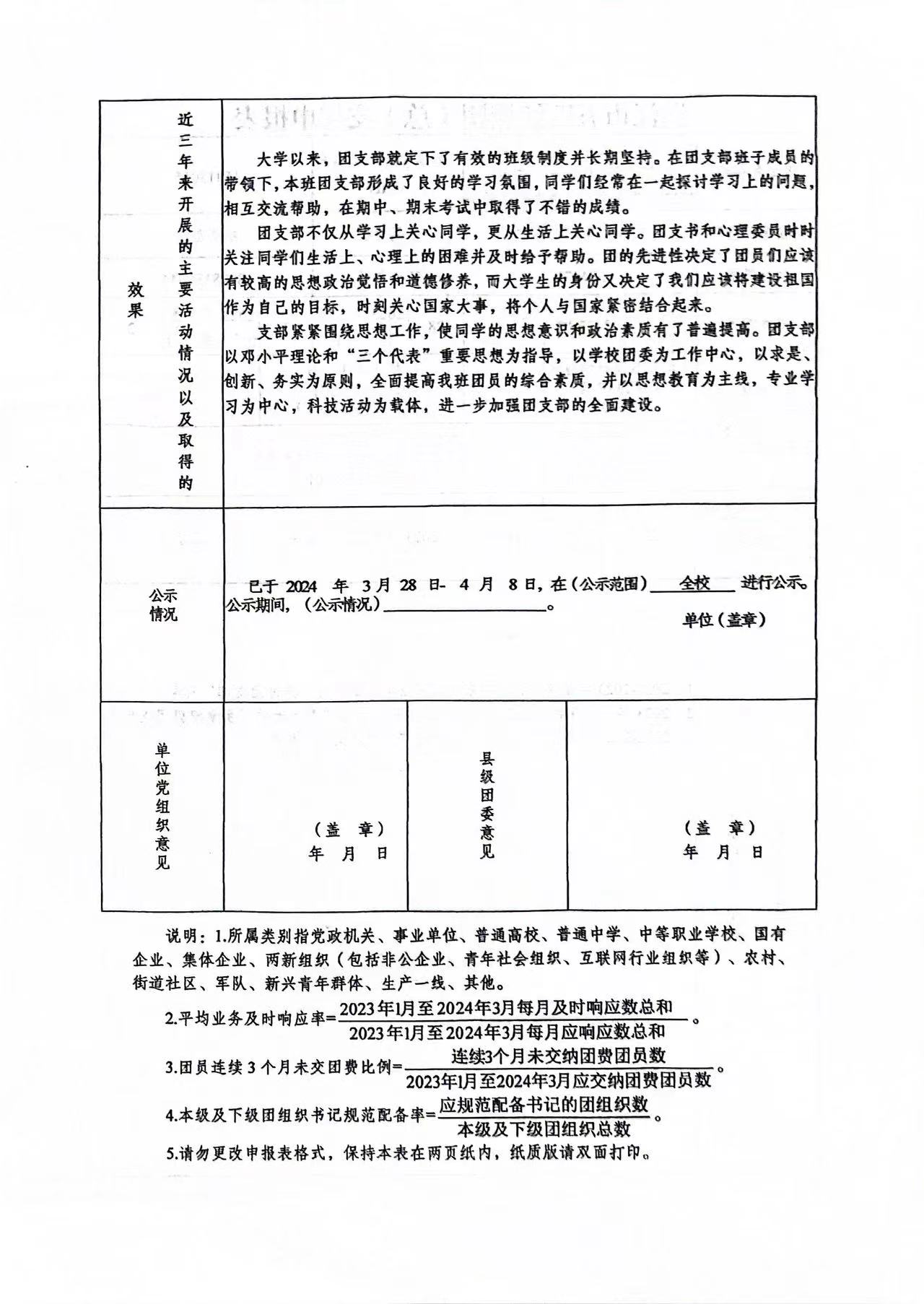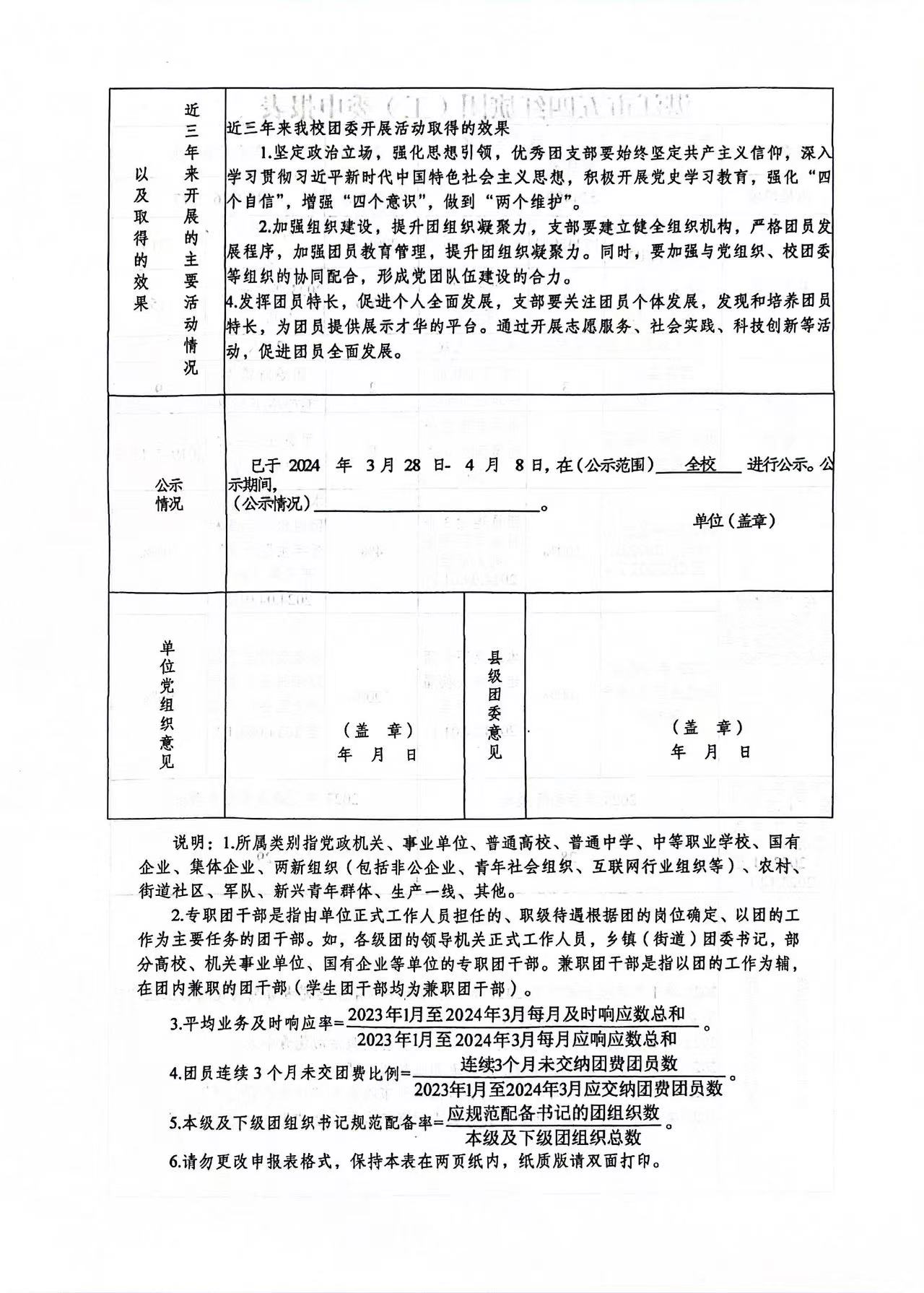 公示期为2024年3月28日至4月8日。公示期内,如有异议,请联系团委专职团干:周子龙,联系方式:15986231411。