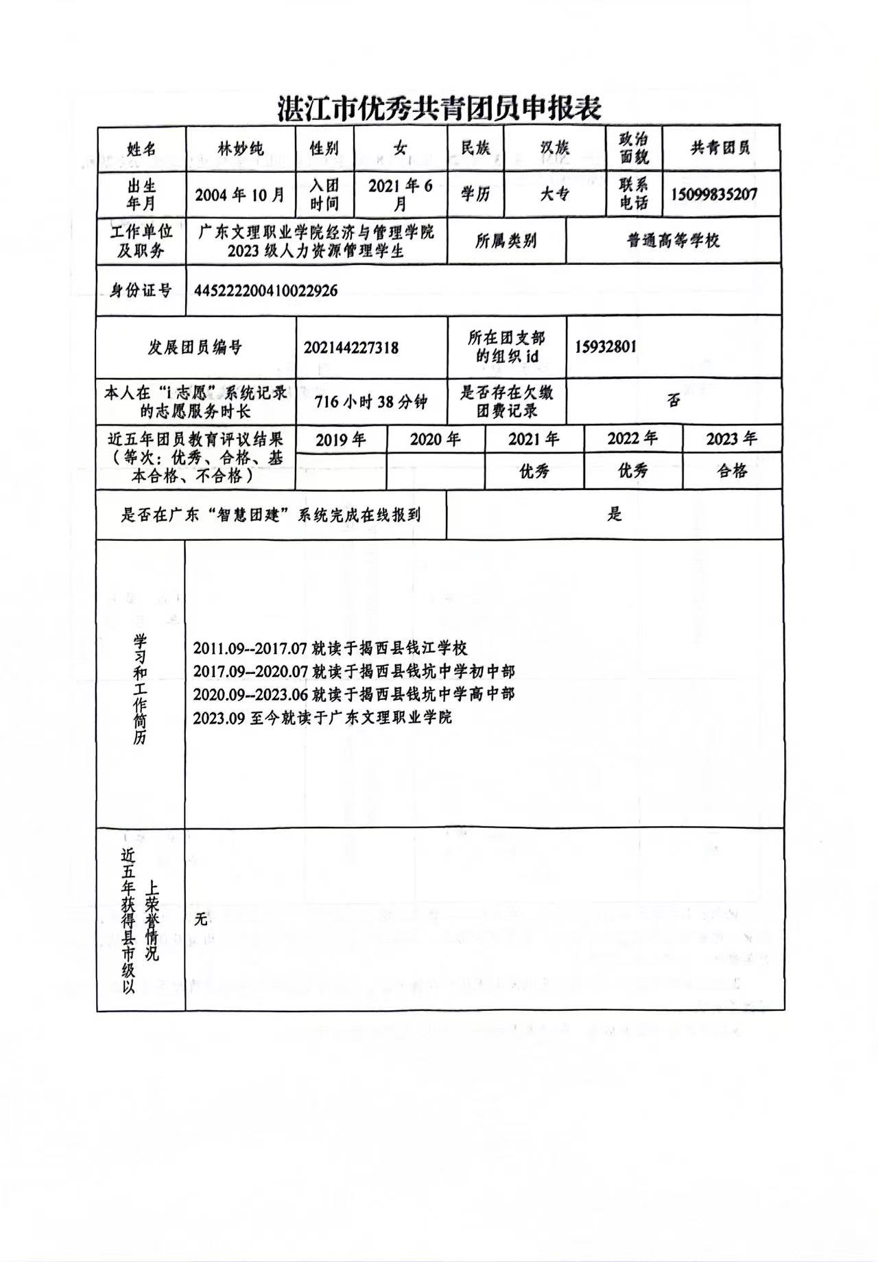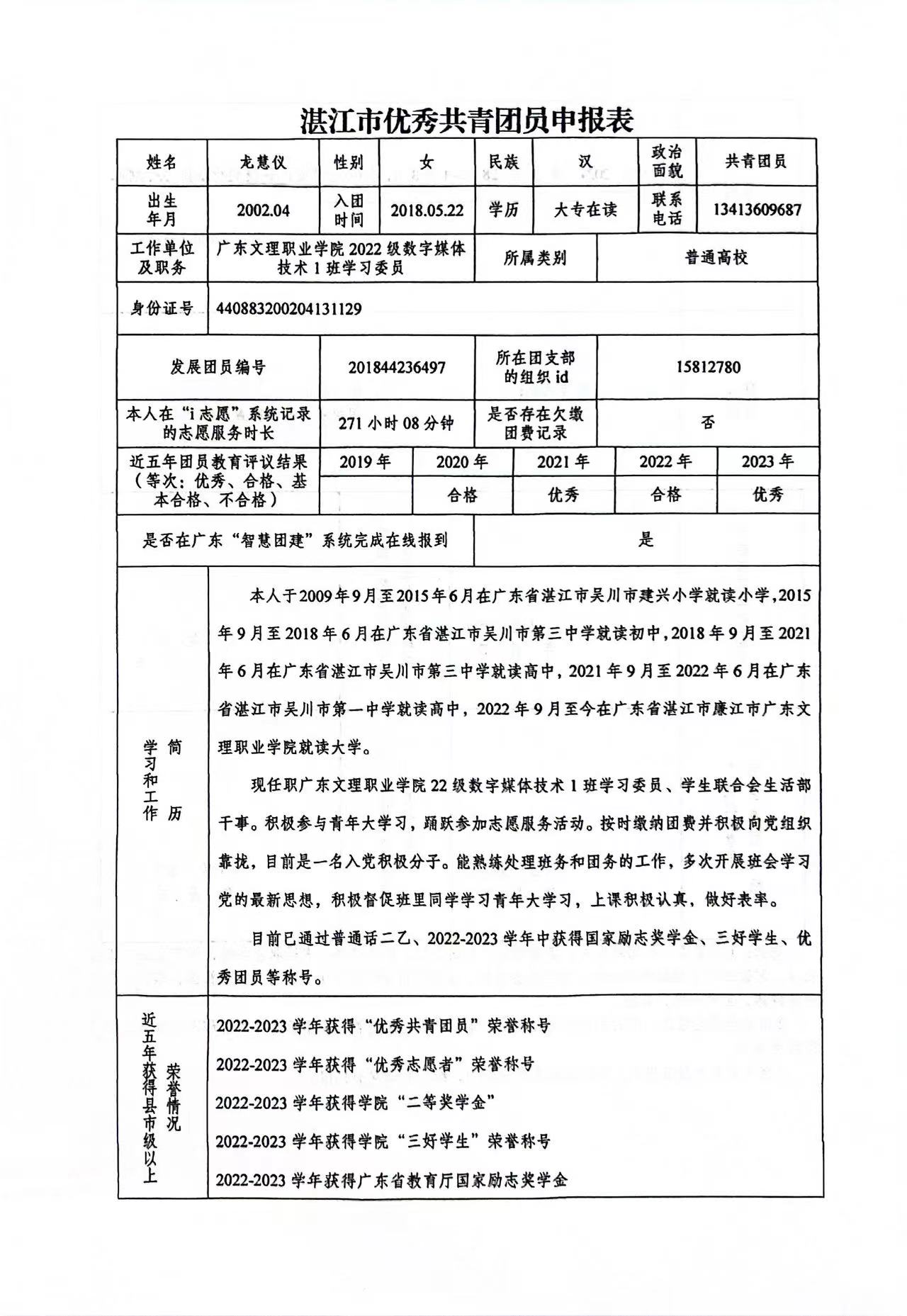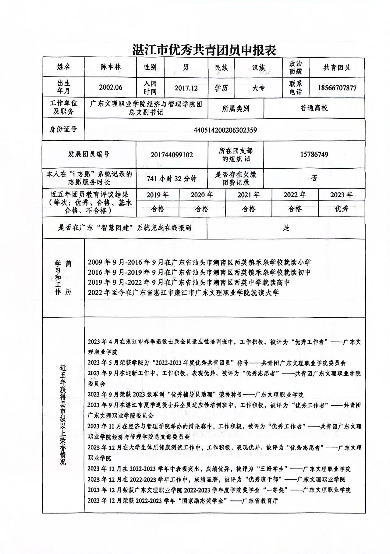 为表彰先进,树立典型,根据团市委关于开展2023—2024年度湛江市五四红旗团(工)委、五四红旗团(总)支部、优秀共青团员、优秀共青团干部的表彰工作通知,经过学院团委研究,决定拟推荐以下单位和个人申报湛江市五四红旗团(工)委、优秀共青团员、优秀共青团干部,现将有关事项公示如下: