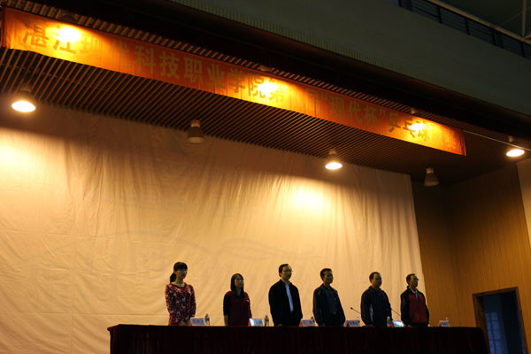 湛江现代科技职业学院第六届“现代杯”乒乓球赛开幕式现场