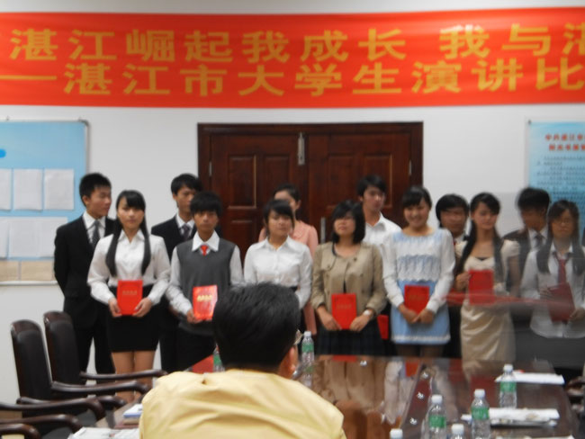 我院有林丹、廖玉琴、陈源兴三名同学参与此次演讲比赛,并荣获优秀奖。胸怀理想年轻人,湛江崛起生力军。我院、湛江师范学院、广东海洋大学、广东医学院等六所湛江高校的大学生参加了本次演讲比赛,我院参赛选手准备充分,表现优秀,用铿锵有力的声音、充满激情的语言以及生动的肢体语言诠释着对“五年崛起看湛江”的独特理解,深深地感染了现场的每一位观众,获得了在场领导和评委的一致好评。