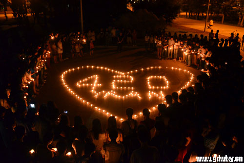活动结束后,同学们久久不愿离去,伴着烛光将自己的哀思和祝福寄向远方。