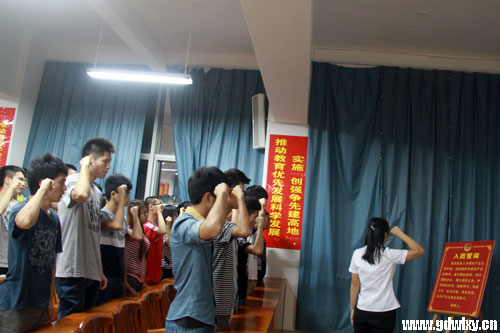 大会还进行了新团员入团宣誓,由团委宣传委员罗发香带领新团员面向团旗进行了庄严的宣誓。相同的誓词,不同的声音,高昂的气势,表示着新一届团员更加坚定为共产主义事业作贡献的决心和勇气。