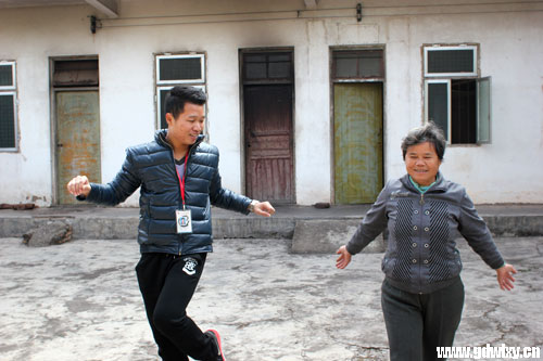 志愿者耐心地与老人们拉着家常,当问及老人们的生活和身体时,他们兴奋地说:“我们在这里生活很好,每天都有肉吃,我们的身体也都很好,这多亏党的政策好啊!”老人的话很直白,也很温暖。有的志愿者边帮老人捶背边陪他们聊天,老人满是褶皱的脸上露出欣慰、满足的笑容。