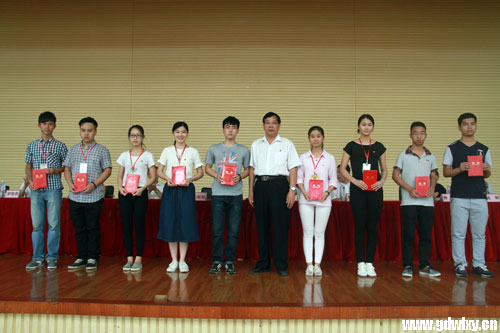 学院党委副书记、副院长王南福为获得廉江团市委荣誉的优秀代表颁奖