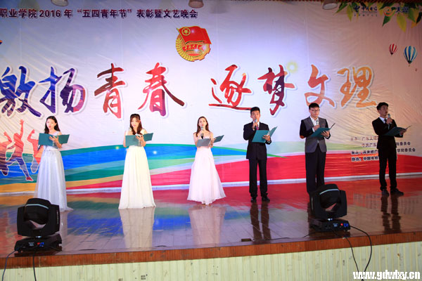晚会在大合唱《光荣啊,中国共青团》中拉开序幕。配乐诗朗诵《永远的青春》声情并茂,带大家回到了九十七年前那段峥嵘岁月。晚会期间还为一批受到湛江市、廉江市和学院表彰的优秀青年颁发了证书。