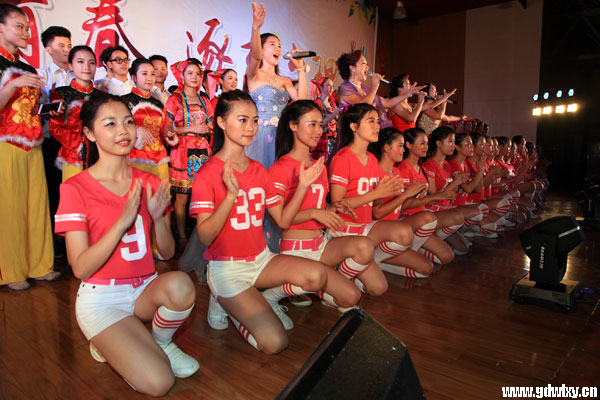 健美操《Fantastic Baby》、街舞协会的《Welcome to the show》、演艺社的舞蹈《高粱红》、拉丁舞协会的《炫彩舞驰》、武术协会的《精武英雄》、音舞表演专业的《板凳上的山歌》等不同类别和风格的歌舞,让青春和激情淋漓尽致地挥洒,展示了我院大学生昂扬向上的精神面貌。晚会在艺术传媒系演唱的歌曲《共圆中国梦》中落下帷幕。