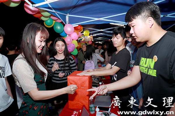 游园活动在晚上七点半正式展开,学院学生联合会首先为大家带来了舞蹈、小品、乐队演唱、街舞等各种精彩绝伦的节目。而在会场周边设置了30多个展位,学院男生为女生准备了众多特色游园活动。所有游戏都设有丰厚的奖品。活动开展得如火如荼,现场氛围从始至终都十分热烈。