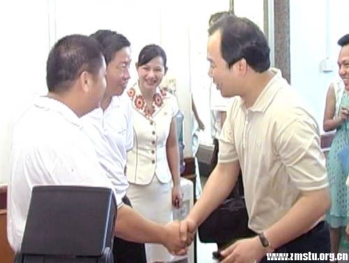党委书记宣承志与前来学院调研的领导进行亲切友好交谈