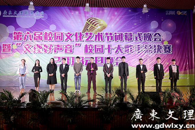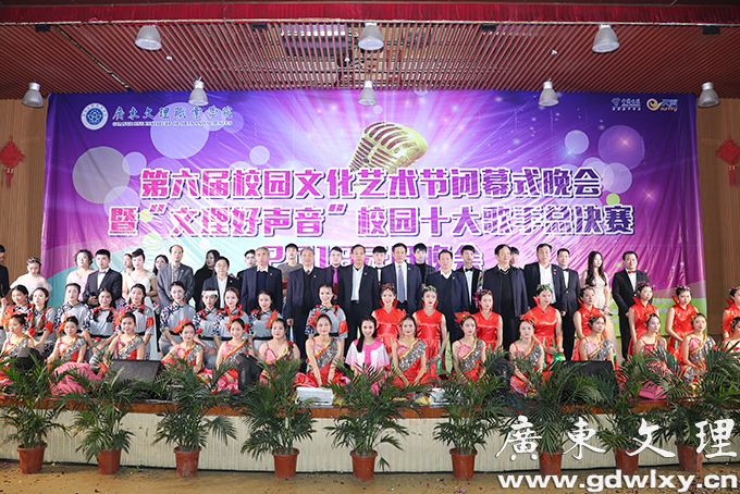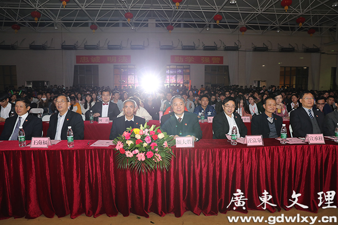 12月28日晚,广东文理职业学院在汇珍苑四楼举行第六届校园文化艺术节闭幕式暨“文理好声音” 校园十大歌手总决赛2018年元旦晚会。学院党委书记颜大胜,党委副书记、常务副院长刘周堂教授,副院长王南福,副院长汪富泉,副院长涂习贤等领导应邀出席。各系、各处室、各部门负责人及学生代表三千余人一同观看演出。