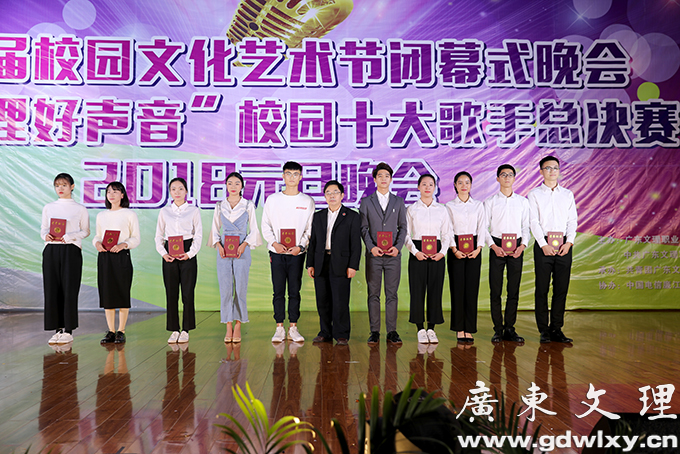 十大歌手经过10位选手的互相比拼,军叶嵘同学获得专业组冠军,黄泳诗同学获得非专业组冠军,党委书记颜大胜为十大歌手冠军颁发了奖状和证书。