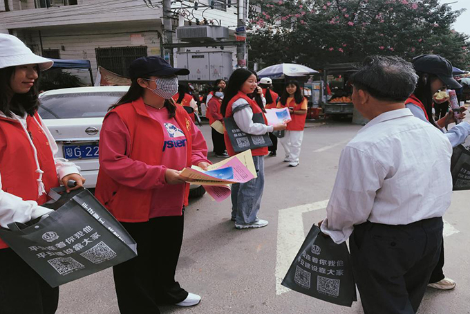 志愿者们向居民们派发普法传单并讲解扫黑除恶、预防诈骗的有关知识。此次活动时长3个半小时,活动分工明确,志愿者工作认真。廉江人民法院工作人员对大家提出的法律问题耐心地给予解答。