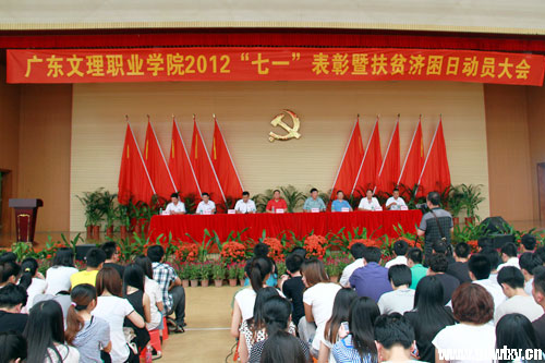 值此建党91周年之际,学院党委于2012年6月27日下午隆重召开“七一”表彰暨扶贫济困日捐赠大会,学院党委班子成员及全体党员和入党积极分子近800人参加了大会,本次大会由学院党委副书记王南福同志主持。