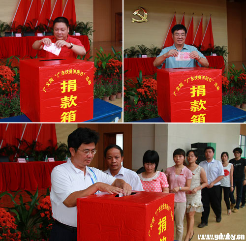 表彰大会结束后,接着进行了“广东扶贫济困日”捐款动员,学院党委班子成员带头捐款,广大党员积极响应,纷纷伸出援助之手,当日捐款达118526.9元
