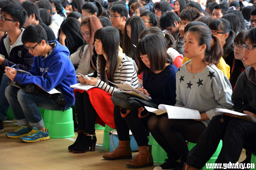 同学们聚精会神地听党课