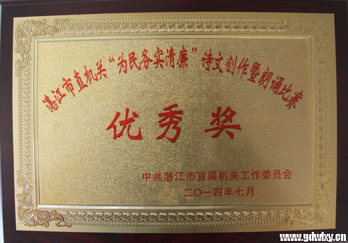 为贯彻落实党的十八大和十八届三中全会精神,深入开展党的群众路线教育实践活动,加强引导各级机关基层党组织和广大党员进一步强化服务意识,切实改进党组织工作作风,湛江市直机关在今年“七一”期间举办了此次诗文创作暨朗诵比赛。