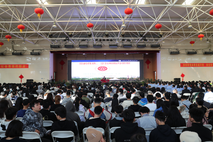 为进一步提升师生入党积极分子思想政治素质,激发广大师生在本科教学工作合格评估中奋勇担当、主动作为,12月5日上午,我校党委书记陈健为第16期入党积极分子讲授“党的性质、宗旨和指导思想”专题党课,500多名入党积极分子参加本次党课学习。
