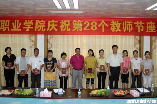 2012年9月10日,为热烈庆祝第28个教师节的到来,我院教师座谈会在行政楼四楼会议室召开。学院董事长宣承志,学院党委书记胡克伟,学院党委副书记、副院长王南福出席会议,各部门负责人和先进教师代表参加会议。