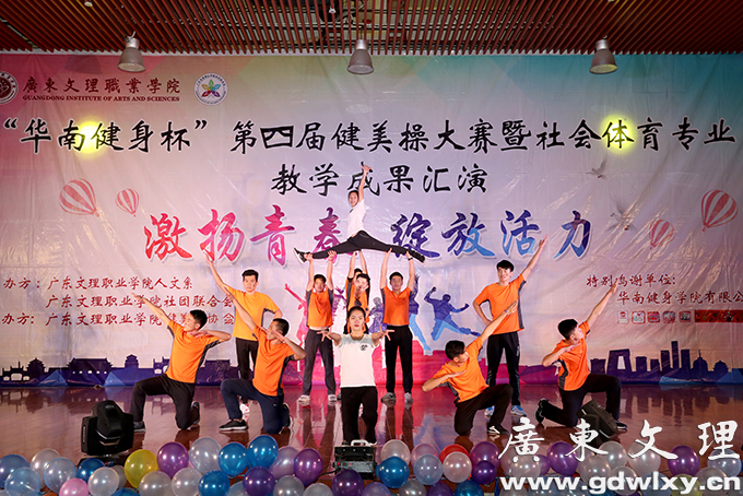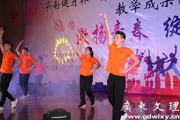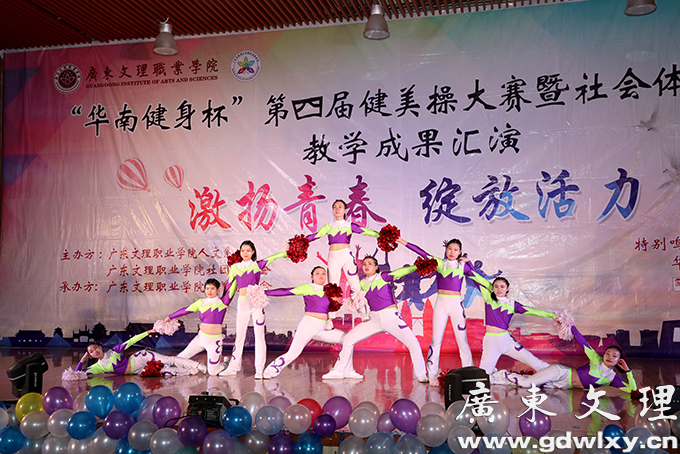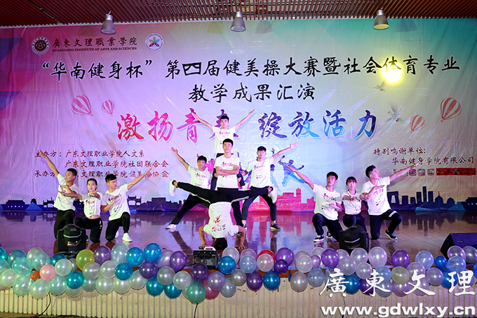 1月8日晚,广东文理职业学院人文系第四届健美操大赛暨社会体育专业教学成果汇演在汇珍苑大礼堂举行。本次参赛学生达到290多人,学院人文系全体师生1000多人现场观看比赛。