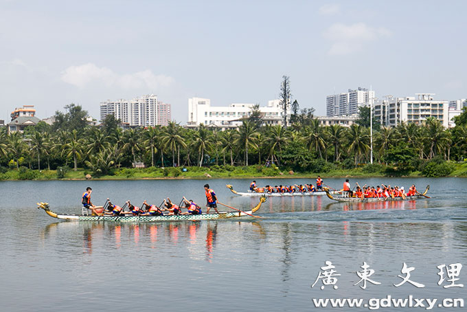 由湛江市龙舟协会举办的2018“庆端午,赛龙舟”活动于6月17日上午在湛江市海滨公园月亮湖开开锣,吸引上万游客观看。参加比赛的有廉江市人民医院、海南琼人联谊会、情暖湛江志愿者团队以及广东文理学院等6支队伍。比赛分男女组分别竞赛。女子组选手飒爽英姿,巾帼风采,成了龙舟赛场上,展现了独特的魅力。经过激烈的较量,最终由广东文理职业学院队夺得男女组双冠军。(图文/人文系 编辑/钟文 审核/刘培林)