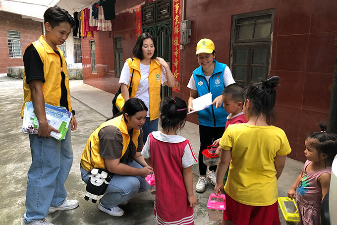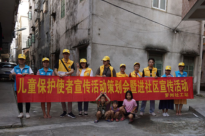 2019年9月15日,人文系2017、2018级法律事务专业6名学生与廉江市罗州社工站的社工一起到廉江市罗州街道梁屋地村开展“保护儿童”宣传活动。