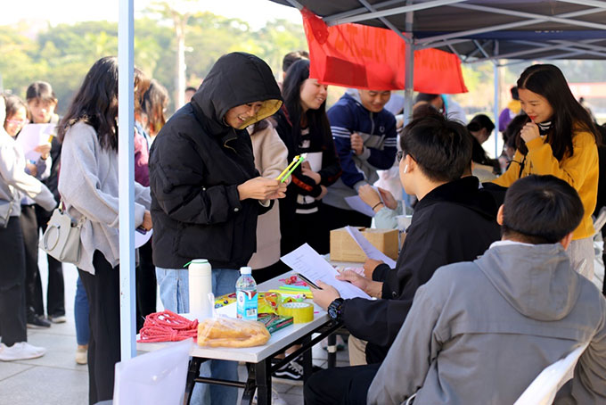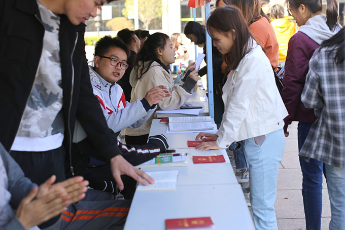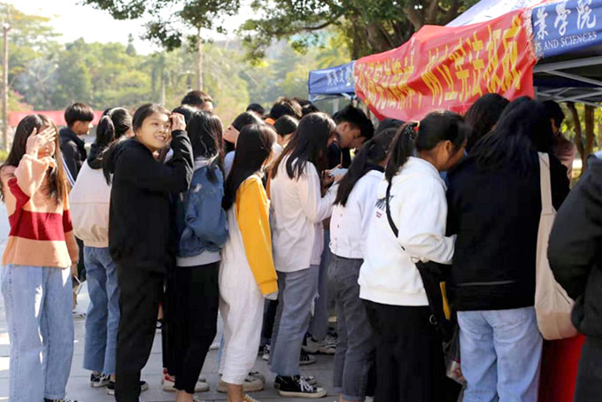 虽然时间已接近中午,但参加活动的学生依然热情高涨,积极咨询法律问题。法律事务专业学生就像是法律顾问,给他们答疑解惑。现场气氛十分活跃。