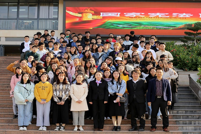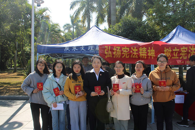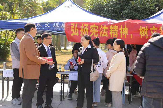 2019年12月4日,人文系主办的宪法宣传日教育活动在学院汇珍苑广场举行,得到学院广大学生踊跃参与。学院副院长李晓豁、教务处处长苏斌、人文系主任李虹到现场指导。
