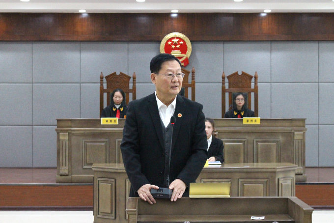 在审判长宣布合议庭休庭期间,校长郝世栋教授对此次的案件做了点评,对同学们表现表示了肯定和赞赏,也指出了同学们的不足,帮助同学进行改正。