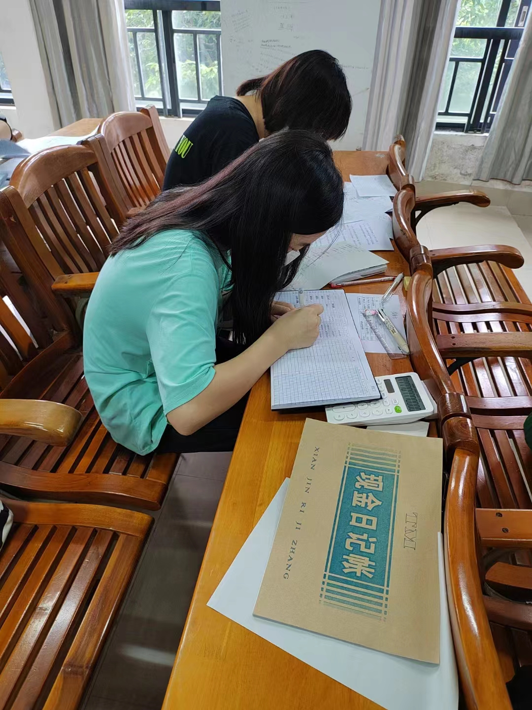 本次会计专业技能比赛以两位同学为一组,比赛内容分为五个项目,分别是点钞、翻打传票、填制记账凭证以及登记账簿、出报表。组内成员根据比赛内容自行组织、协调各自负责的项目,力争以最佳的分工合作获取优秀的成绩。