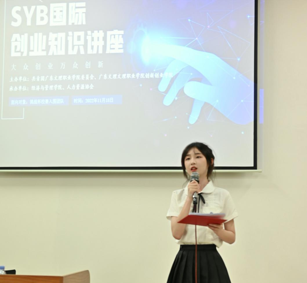 为贯彻党中央、国务院发布的国家创新驱动发展纲要,落实学院“挑战杯·大学生创新创业大赛”相关要求,为我校大学生创新创业项目策划奠定基础,由共青团广东文理职业学院委员会、广东文理职业学院创新创业学院、经济与管理学院主办,人力资源协会承办的“国际创业知识(SYB)学生大讲堂”活动于11月18日在实训楼A516顺利召开!在经济与管理学院领导和各专业老师的悉心指导下,经济与管理学院学生讲师团历经一个多月准备,从八个专业角度展开授课,为12个入围挑战杯决赛的创业团队,献上了一场精彩的SYB国际创新创业知识讲座,为“挑战杯·大学生创新创业大赛”决赛奠定了深厚的理论基础。